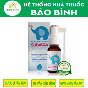 Xịt mũi họng lợi khuẩn Subavax 15ml bổ sung lợi khuẩn (vi khuẩn có lợi) giúp tăng sức đề kháng niêm mạc đường hô hấp trên như mũi miệng họng, hầu thanh quản. Giúp giảm nhẹ triệu chứng sổ mũi, ngạt mũi, ho, sốt, đau họng do viêm họng, viêm amidan, đặc biệt ở trẻ em.